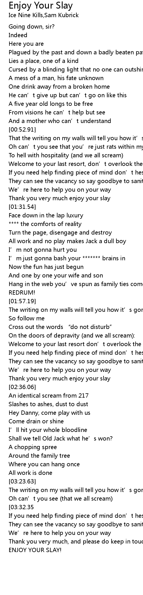 | [04:01.43] | ENJOY YOUR SLAY! |