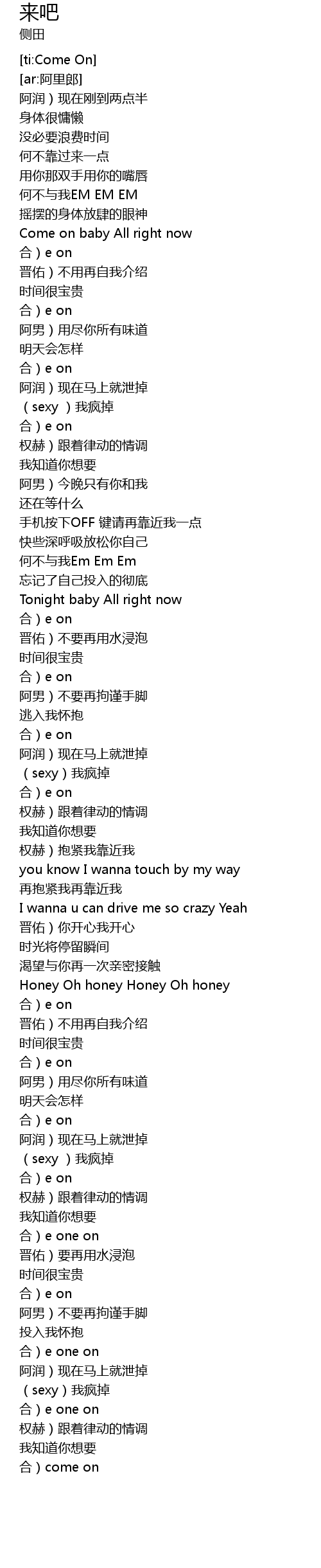 | [02:09.650] | Honey Oh honey Honey Oh honey |