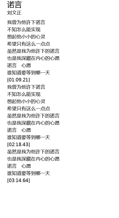 | [02:04.21] | 诺言 心愿 |