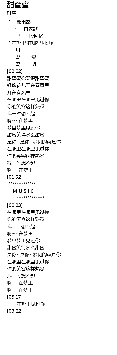 | [00:25] | 甜蜜蜜你笑得甜蜜蜜 |