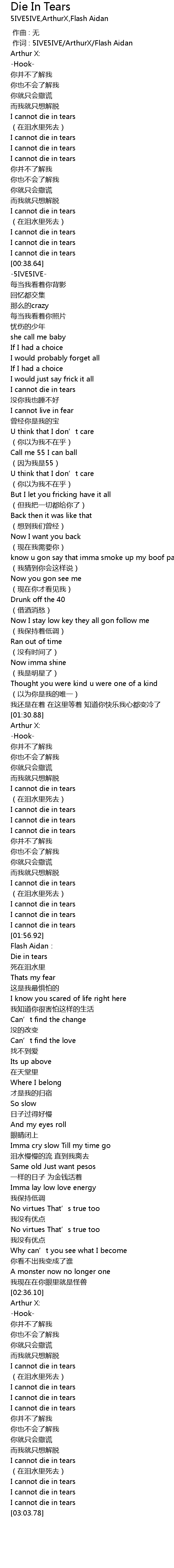 | [01:52.19] | zài lèi shuǐ lǐ sǐ qù |