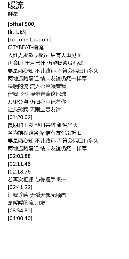 | [00:47.34] | 是暖的流 流入心里暖着我 |