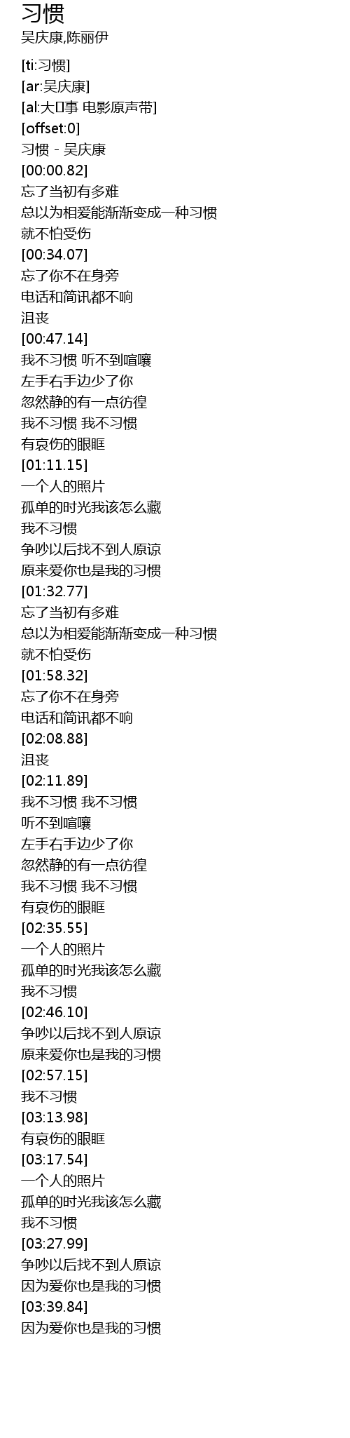 | [00:00.06] | 习惯 - 吴庆康 |