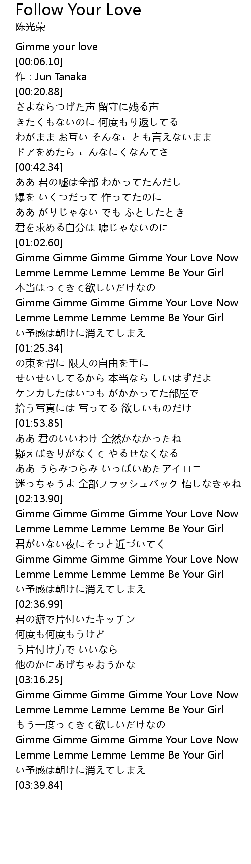 | [03:16.70] | Gimme Gimme Gimme Gimme Your Love Now |