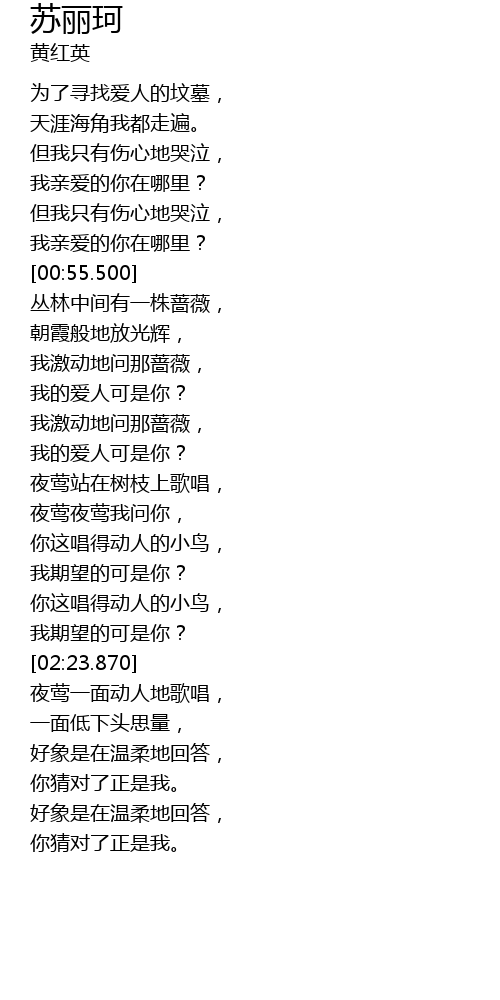 | [02:13.390] | 你这唱得动人的小鸟, |