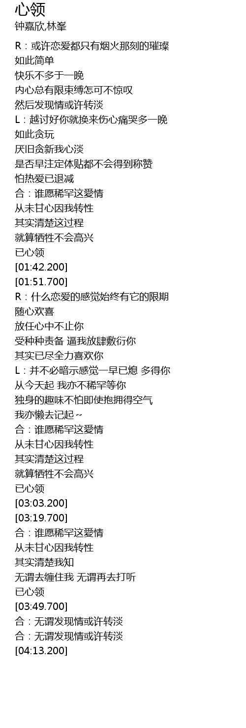 | [01:38.400] | 已心领 |