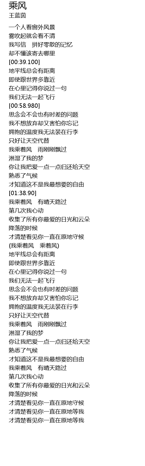 | [01:38.310] | 我乘着风 有晴天路过 |