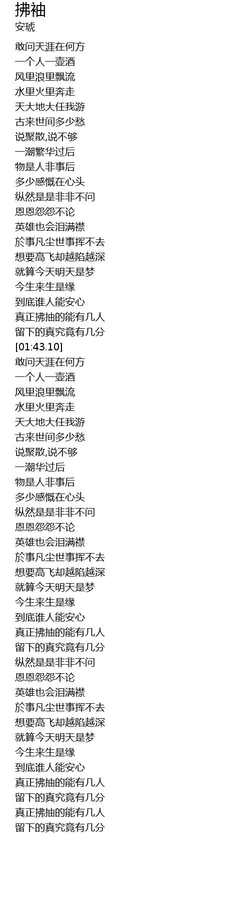 | [03:43.46] | 於事凡尘世事挥不去 |
