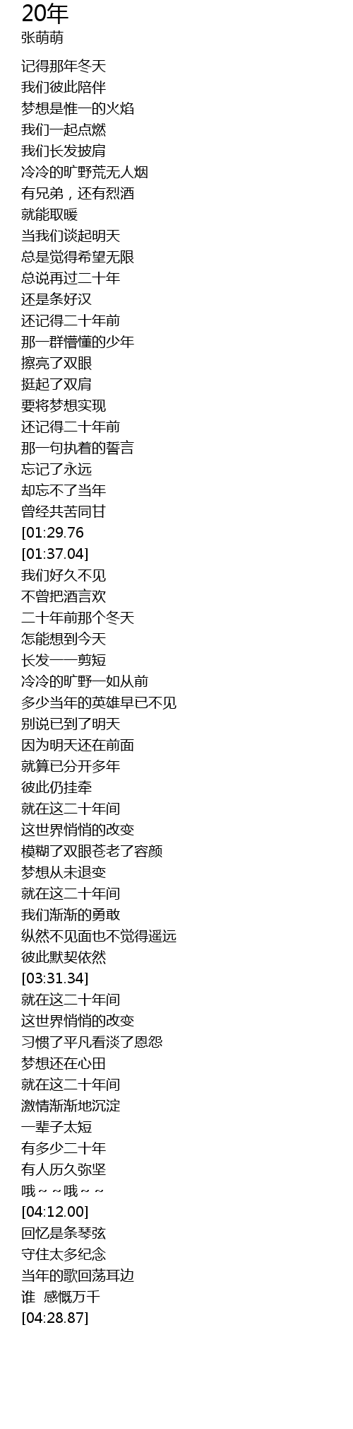 | [04:00.16] | yǒu duō shǎo èr shí nián |