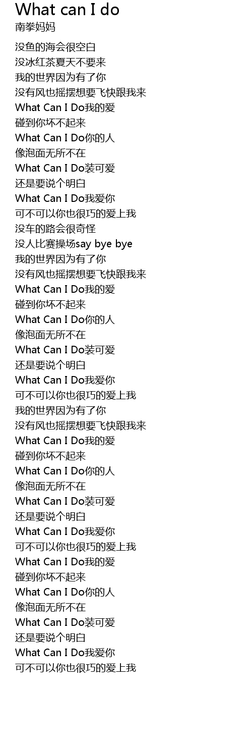 | [00:51.889] | What Can I Do zhuang ke ai |