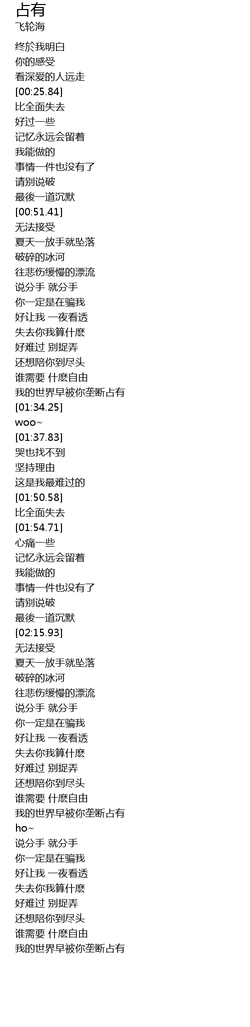 | [03:23.69] | 我的世界早被你垄断占有 |