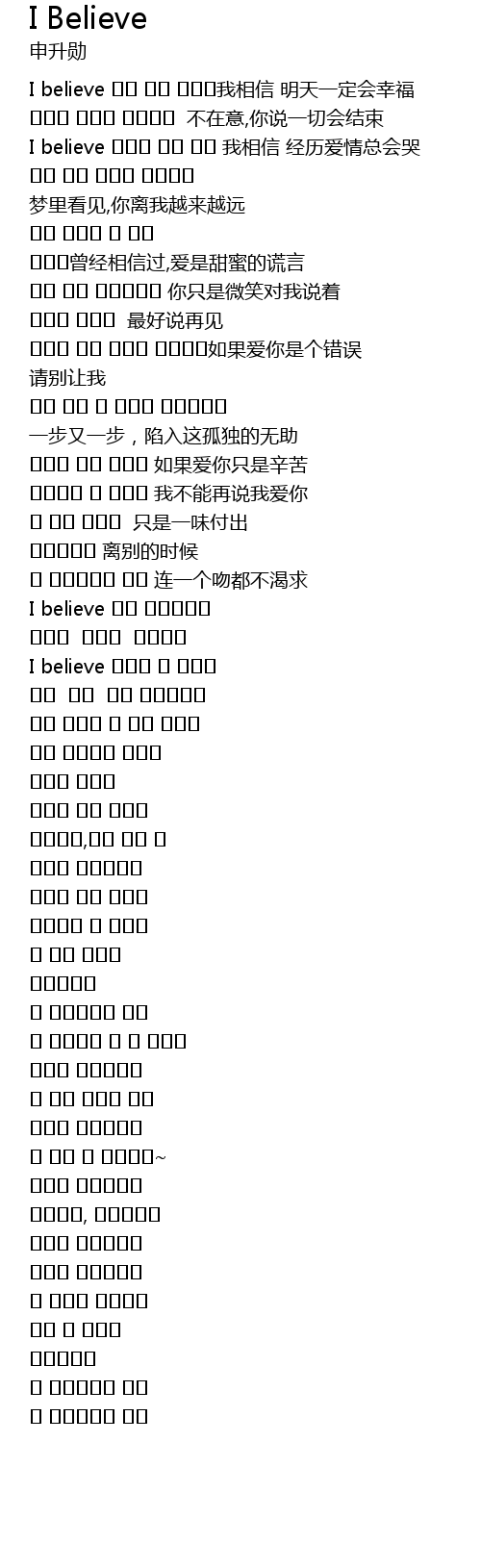 | [00:14.84] | I believe wǒ xiāng xìn míng tiān yí dìng huì xìng fú |