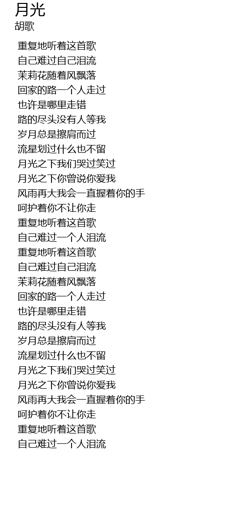 | [01:42.180] | 重复地听着这首歌 |