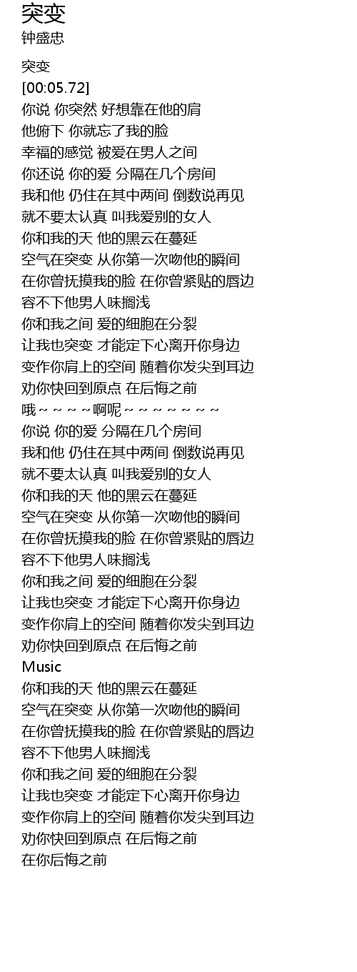 | [02:23.07] | 让我也突变 才能定下心离开你身边 |