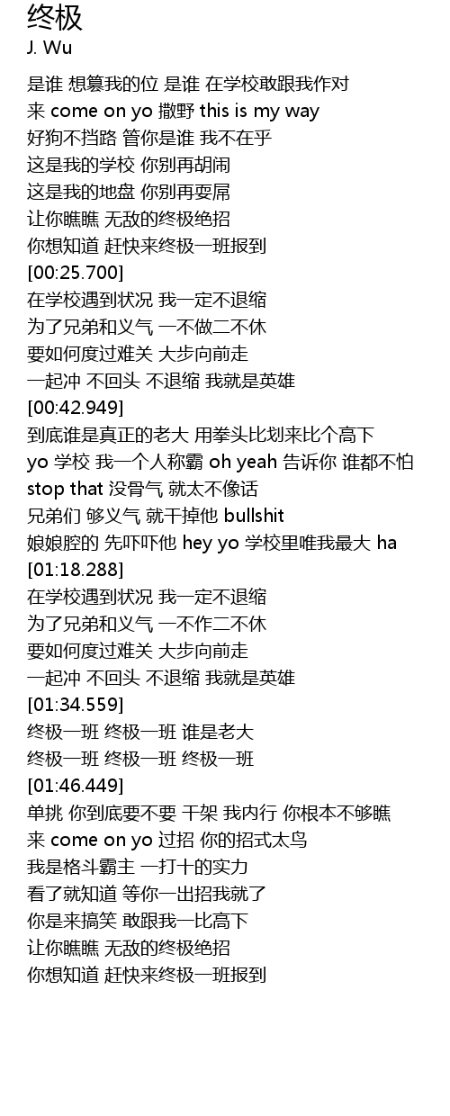 | [01:42.499] | 终极一班 终极一班 终极一班 |
