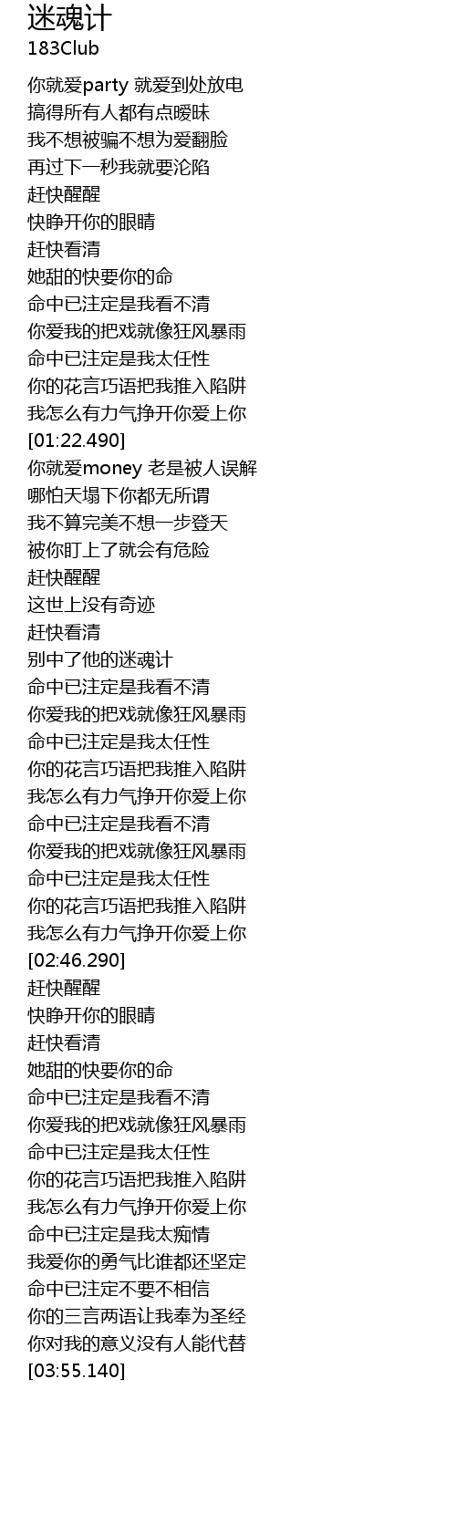 | [01:39.320] | 你就爱money 老是被人误解 |