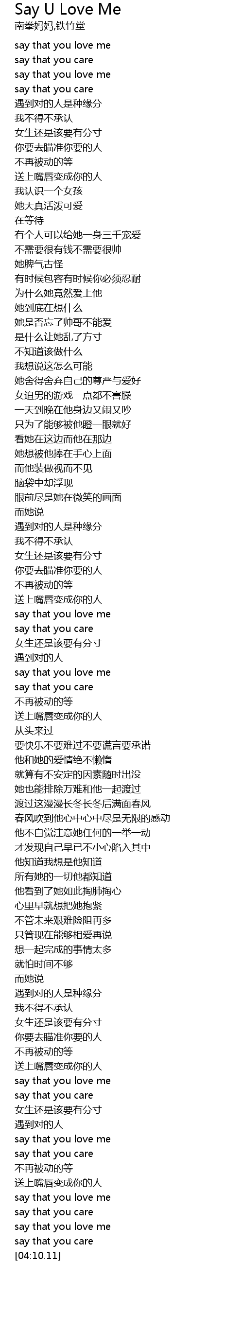 | [04:06.74] | say that you love me |