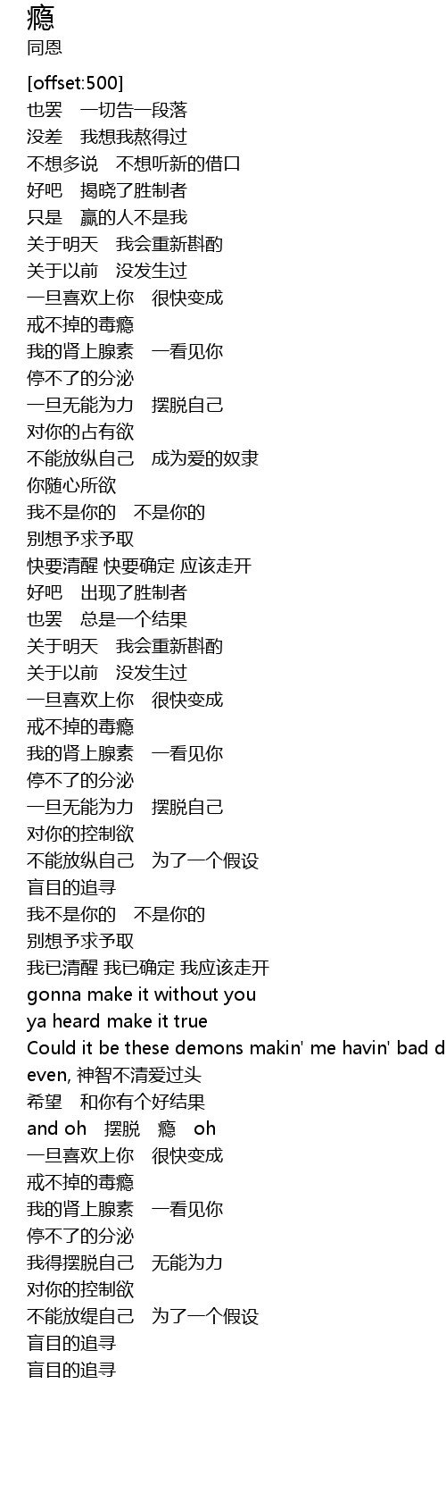| [03:20.19] | 戒不掉的毒瘾 |