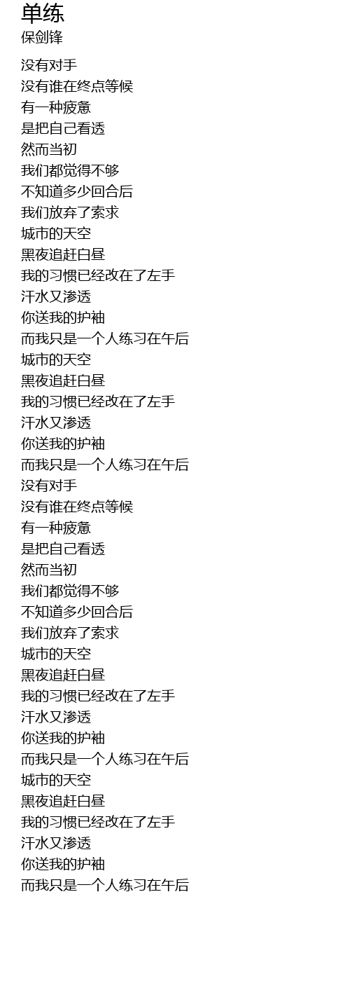| [00:55.440] | 而我只是一个人练习在午后 |