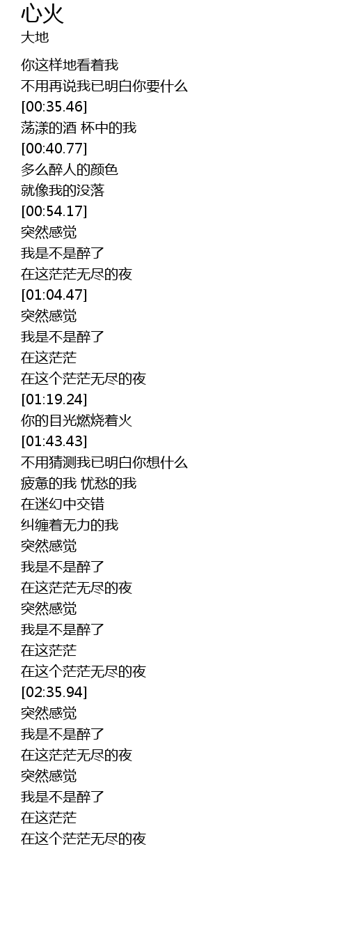 | [01:39.94] | nǐ de mù guāng rán shāo zháo huǒ |