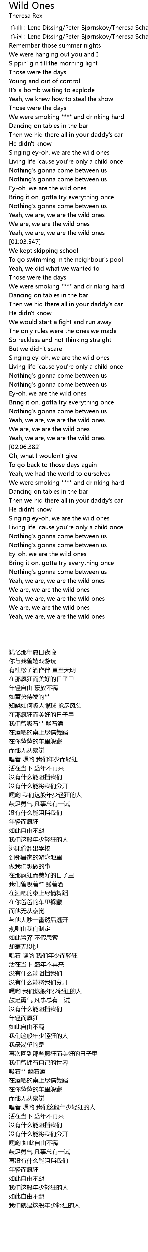 | [00:31.581] | Singing ey-oh, we are the wild ones |