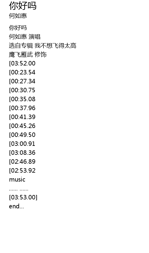 | [03:29.85][03:00.91][02:31.90][00:56.35] | ni hao ma hai shi yi ge ren ma |