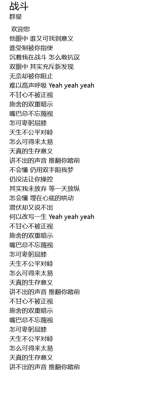 | [00:25.80] | 沉着我在战斗 怎么敢抗议 |