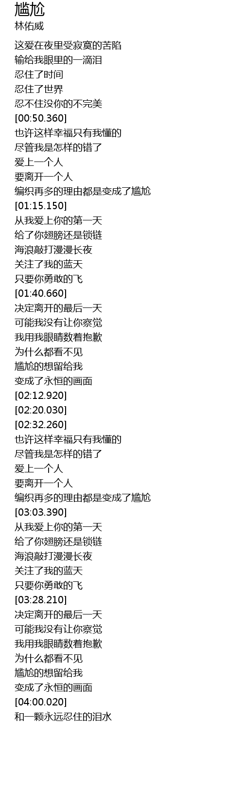 | [03:47.400] | 尴尬的想留给我 |
