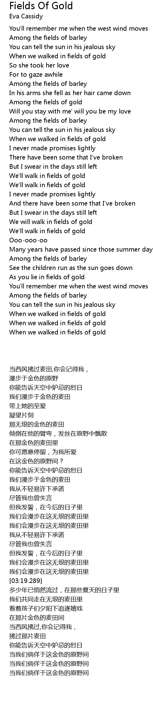As you lie in fields of gold |