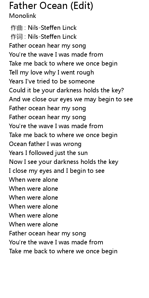 | [00:58.34] | Father ocean hear my song |