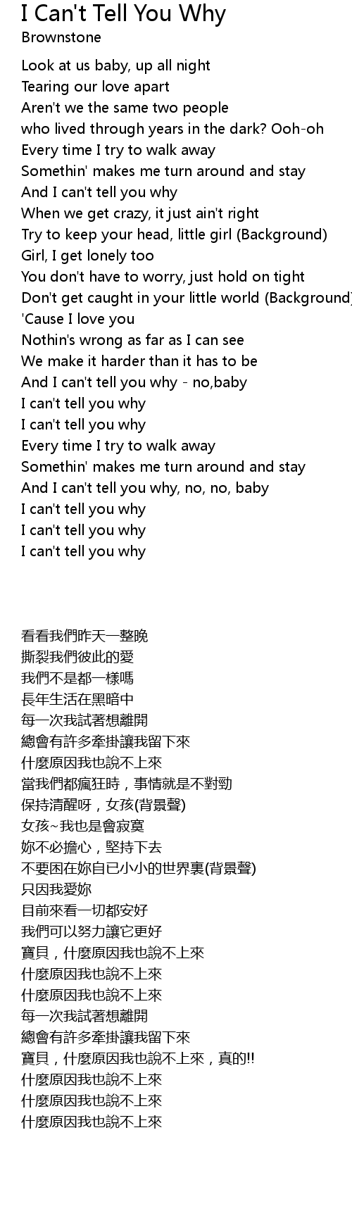 And I can't tell you why - no,baby |