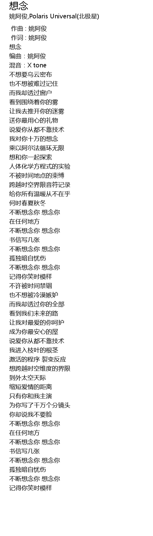 | [00:01.000] | 作词 : 姚阿俊 |