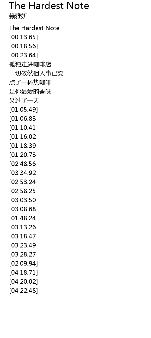 | [00:10.88] | The Hardest Note |