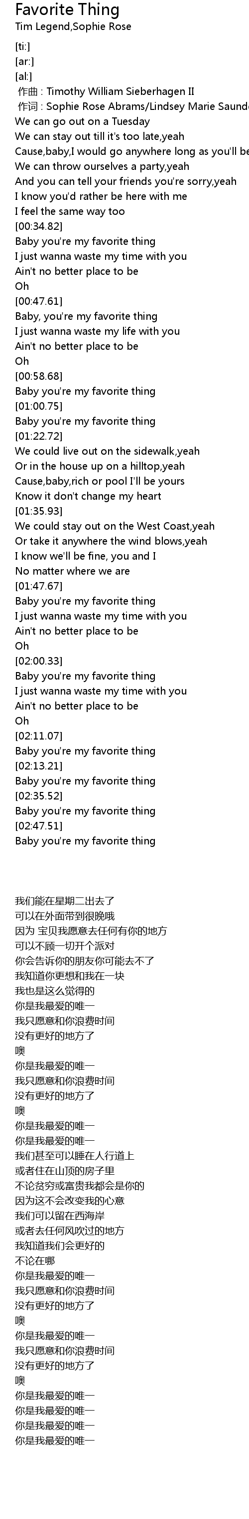 | [02:36.03] | Baby you' re my favorite thing |