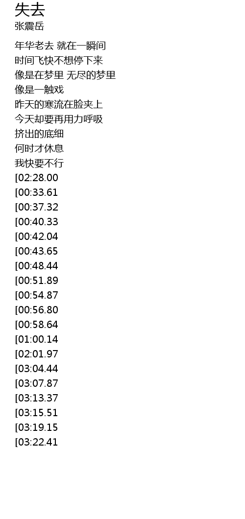 | [03:37.35][03:07.87][02:09.03][01:10.25] | 原来 我什么都没有 |