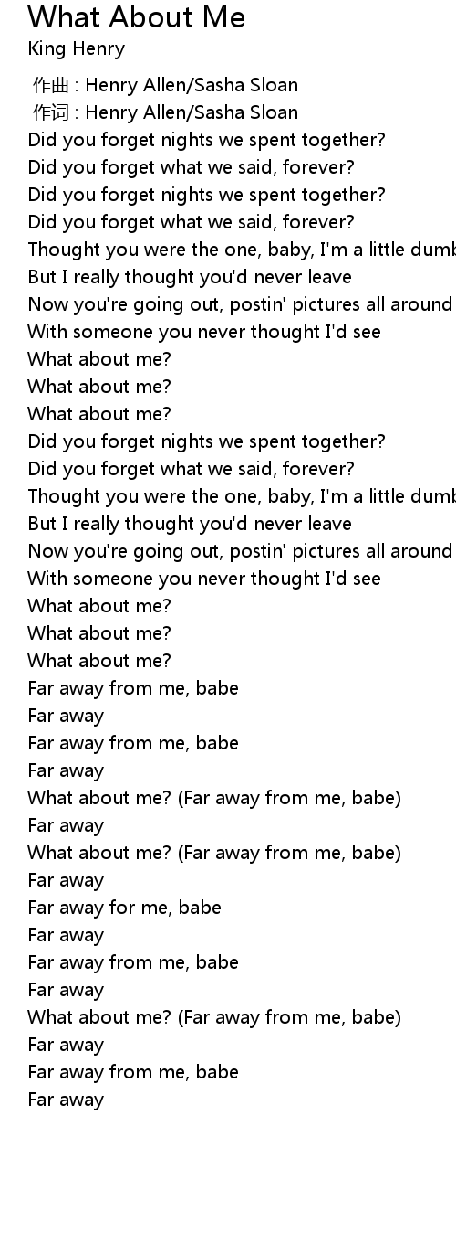| [03:20.94] | What about me? (Far away from me, babe) |