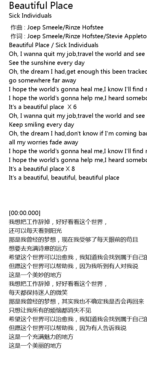 | [00:00.000] | Beautiful Place Sick Individuals |