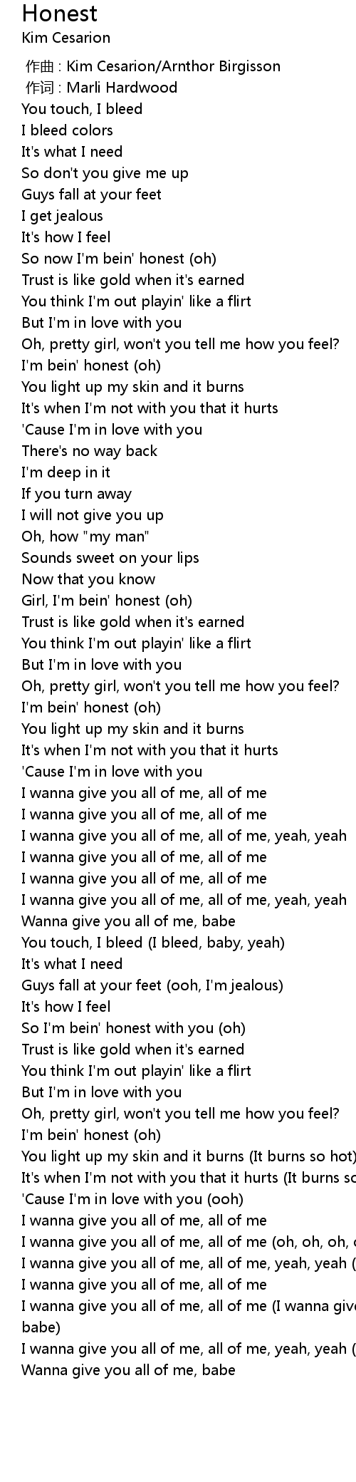 | [00:34.704] | So now I'm bein' honest (oh) |
