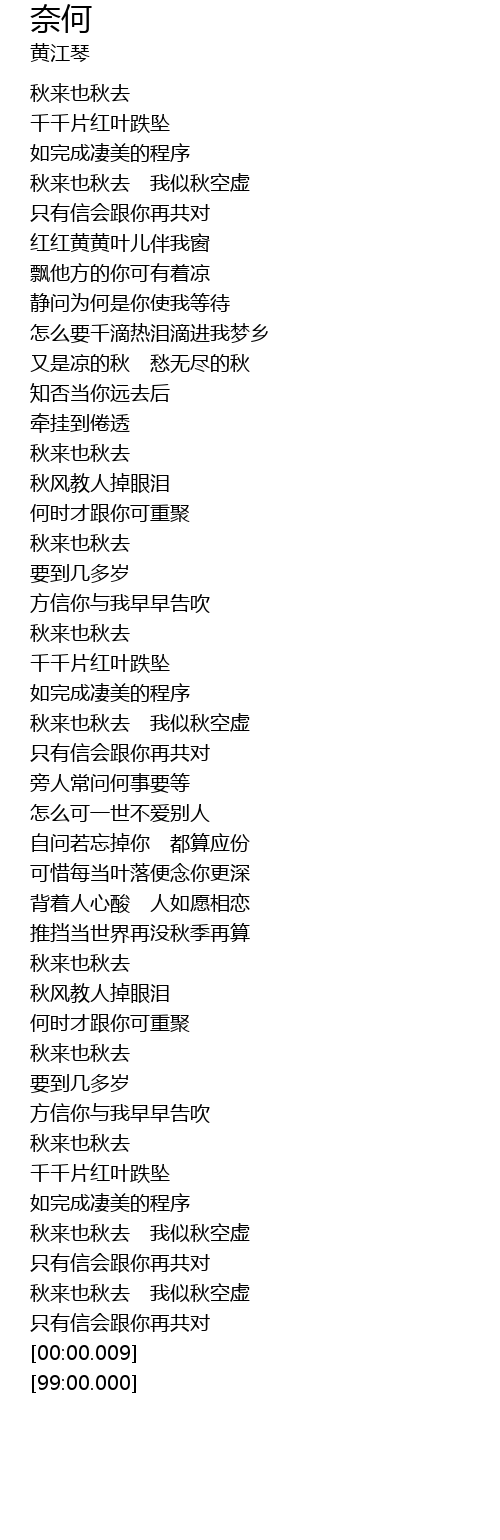| [04:09.42] | 秋来也秋去 我似秋空虚 |