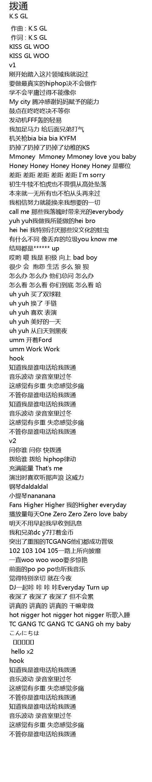 | [02:18.40] | hot nigger hot nigger hot nigger ting ge ru shui |