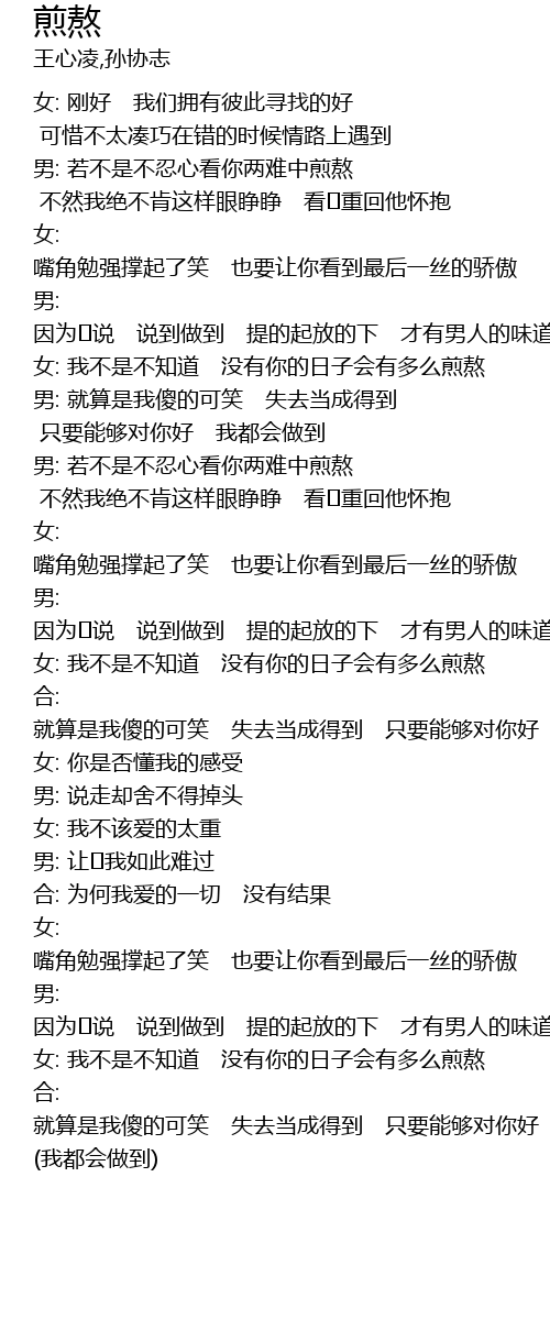 | [02:30.79] | 女: 我不是不知道 没有你的日子会有多么煎熬 |