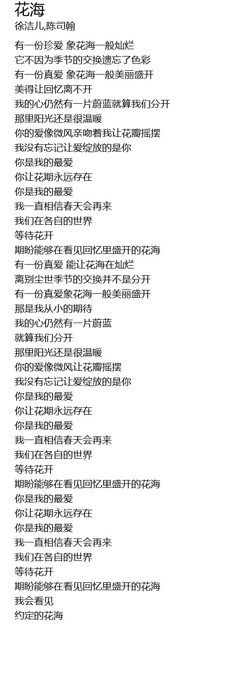 | [01:56.26] | 有一份真爱 能让花海在灿烂 |