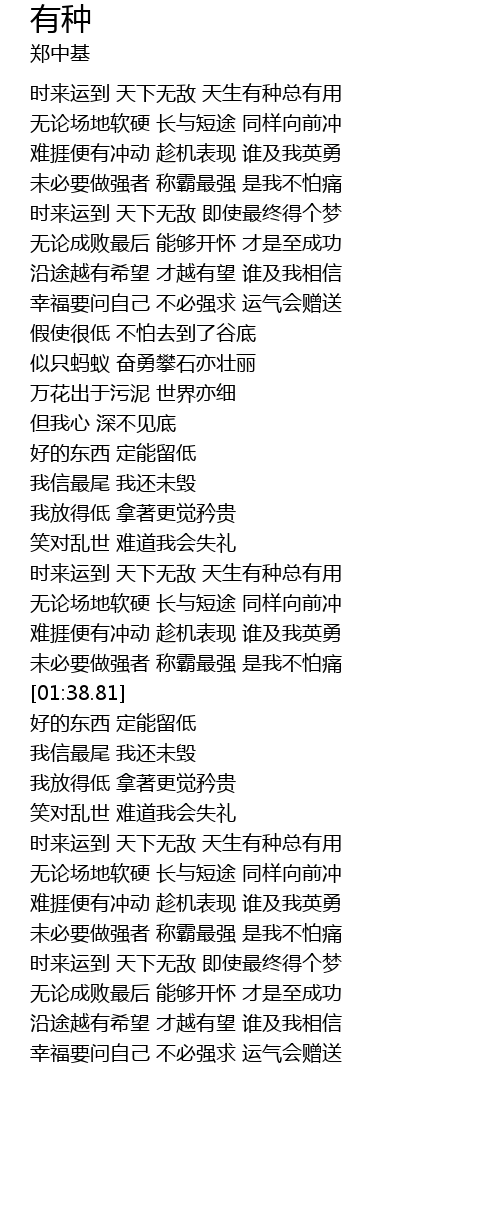 | [02:22.92] | 时来运到 天下无敌 天生有种总有用 |