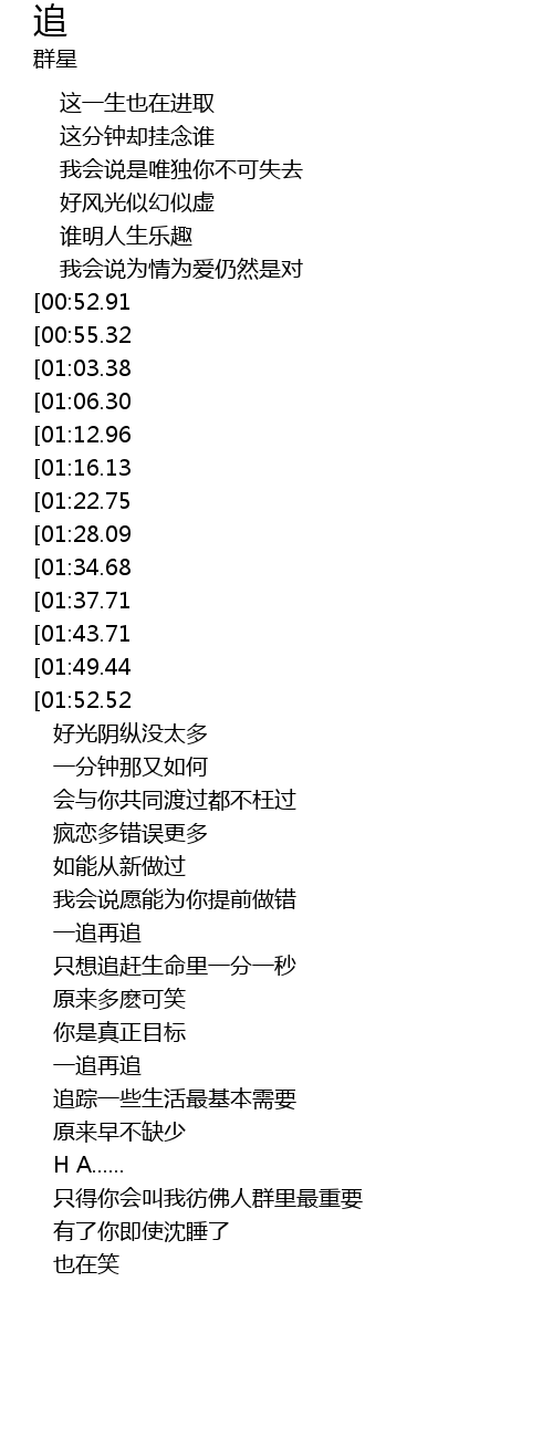 | [02:49.70][01:16.13] | 只想追赶生命里一分一秒 |