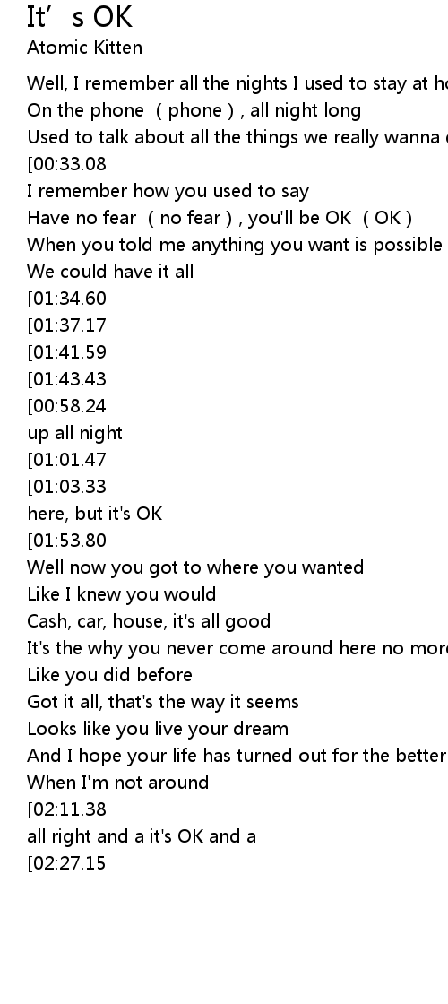 | [00:43.42][01:41.59][02:29.82] | I say it' s OK |