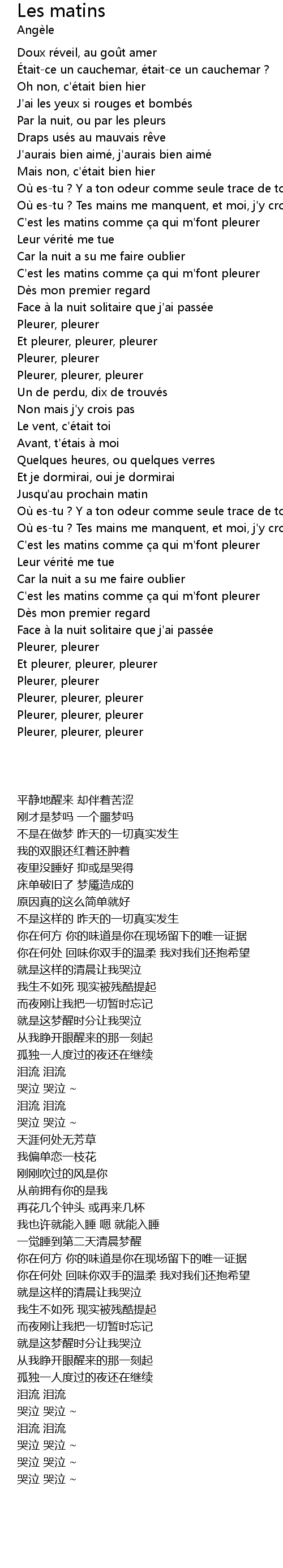 | [00:56.33] | C'est les matins comme ça qui m'font pleurer |