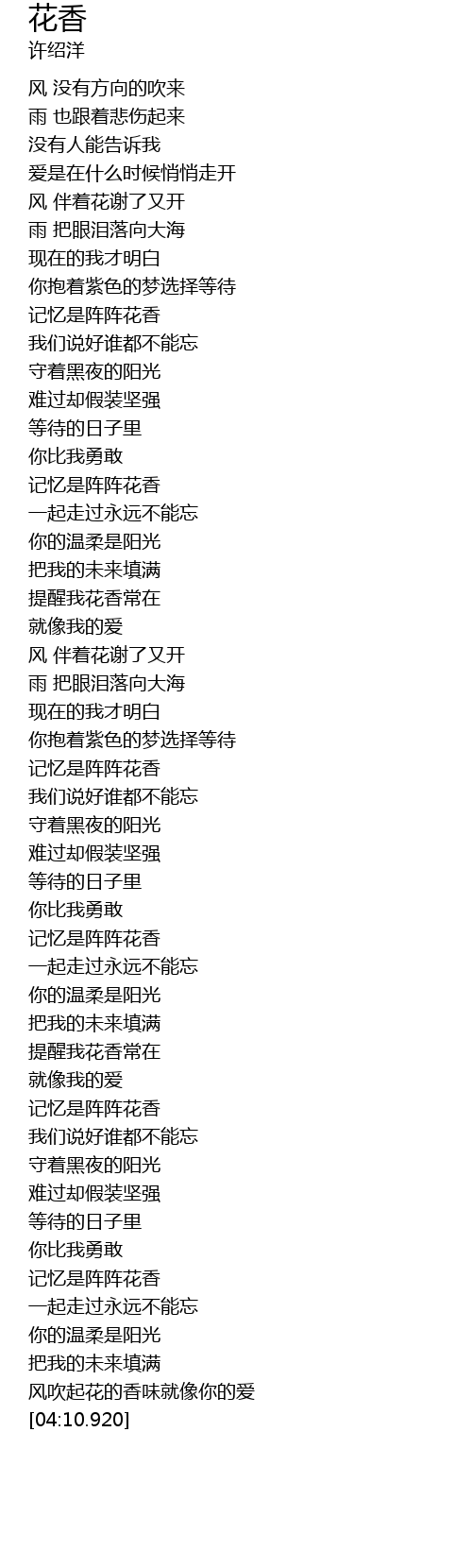 | [02:59.780] | 记忆是阵阵花香 |