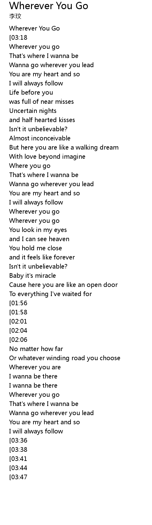 | [02:47] | Wherever you go |