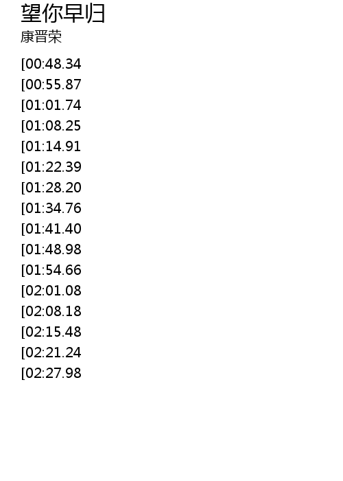 | [04:27.39][02:27.98] | 希望你早一日回来 |