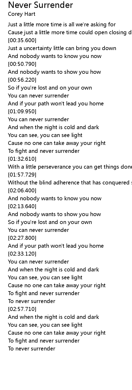 | [02:55.460] | To never surrender |